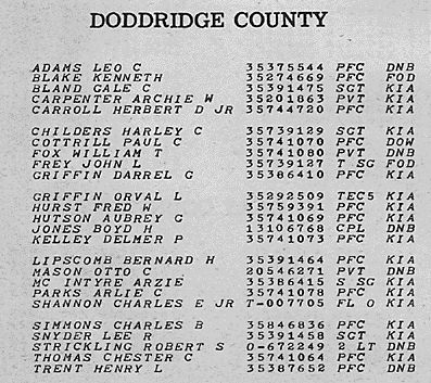 Doddridge County has provided more servicemen and servicewomen per capita than any other county in the USA. The Wall is a testimonial to those who have served.