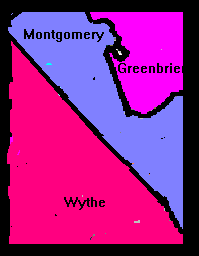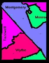 Wythe Co was struck off Montgomery Co in 1790 (the map on the upper left). Wythe Co was itself divided in 1793