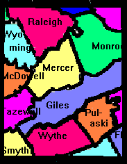 to form Grayson Co and again in 1800 to form Tazewell (the center map). Giles Co was formed from the northern